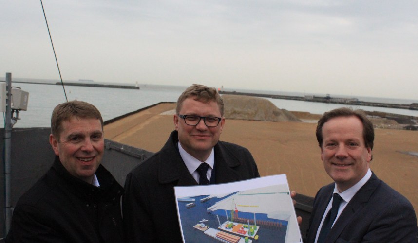 • Image (left to right) – Stuart Eckersley, VSBW Project Director; Tim Waggott, Chief Executive of the Port of Dover; and Dover and Deal MP, Charlie Elphicke