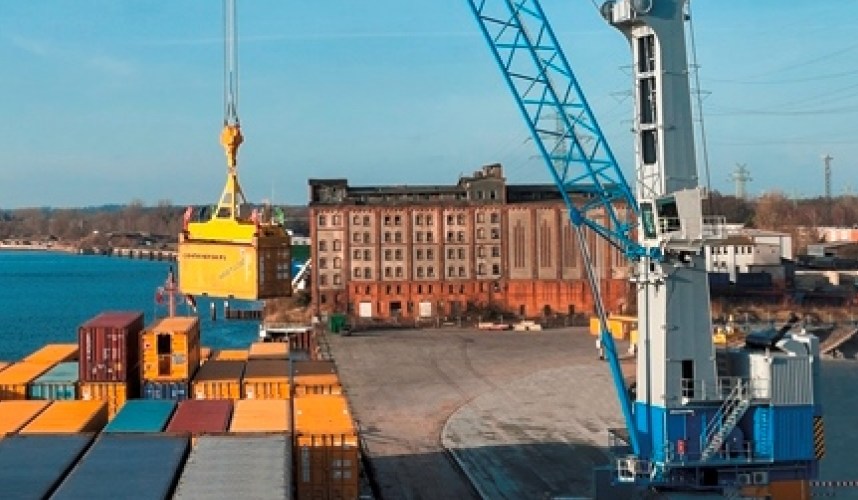 Two Konecranes Gottwald Model 5 Mobile Harbour Cranes will arrive during Q1 2019 to handle containers and palletised fruit at Port of Dover’s new multi-purpose refrigerated cargo terminal. The picture shows a similar crane handling containers.