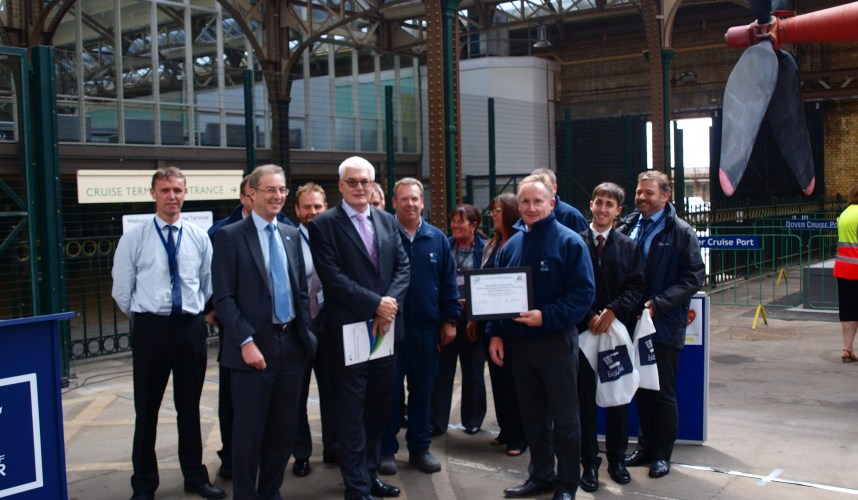 Dover Western Docks Revival project achieves sustainability excellence award 0 comments / Category : Press Release The Port of Dover secured a top sustainability award from CEEQUAL for the port’s flagship development of the Western Docks and the town’s waterfront, the Dover Western Docks Revival (DWDR) project. The Port’s DWDR project team was presented with its ‘Excellent’ CEEQUAL Interim Client and Outline Design Award at this year’s annual Port of Dover Safety Day on the 13th July. The Port joins the 2012 London Olympic and Paralympic Games as another high profile project to achieve a top CEEQUAL Award. CEEQUAL is the evidence-based sustainability assessment, rating and awards scheme that promotes the achievement of high environmental and social performance in civil engineering, infrastructure, landscaping and public realm projects. The £250m DWDR project – the single biggest investment ever undertaken by the Port of Dover –achieved a score of 88.6% in the assessment of the master planning and design stages. The project’s success has come from a strong commitment to embed sustainability in the management processes from the initial planning of the project. Sections in the CEEQUAL assessment where the project scored particularly highly, include: Project Management: 97% Ecology and Biodiversity: 97% Physical resources use and management: 97% Water Environment: 92% People and Communities: 95% The CEEQUAL assessment will now continue through construction to the Final Award Stage in two parts: Marine Civil Works and Land Based Infrastructure. The details of the development were developed in close consultation with the local and business communities. This partnership continues throughout the design and delivery of the project as the port seeks to fulfil its sustainability objectives. Matt Gale, Environmental Advisor and DWDR CEEQUAL sponsor at the Port of Dover, commented on the project: “Sustainability is at the core of the design, planning and delivery of the Dover Western Docks Revival and this award is a fantastic endorsement of that approach. To secure similar recognition as the 2012 London Olympics and Paralympics Games – the greenest games ever – is hugely positive.” The award certificates were presented by CEEQUAL Managing Director, Chris Broadbent, at the Port of Dover’s Cruise Terminal 1. Commenting on the project team’s exceptional performance, he said: “This is an excellent achievement by the whole team; it really demonstrates the commitment there is to sustainable development at the port in Dover. I fully expect the project to continue to demonstrate this same commitment throughout the construction works and look forward to seeing the positive impact this will have.” Tim Waggott, Chief Executive at the Port of Dover, said: “DWDR is a game-changer for the port’s operations and it’s great that the project team’s efforts to embed sustainability throughout the scheme have been recognised in an independent CEEQUAL Award. “For a project of this scale, it’s vital that we work closely with the town to help shape, deliver and eventually work and enjoy this asset. As we progress our plans, we will maintain that same level of diligence in seeking to minimise potential impacts of our work, and maximise the benefits for our town, our heritage and the environment.” ENDS Link to Case Study: Dover Western Docks Revival (CEEQUAL) Note to editors: 1. About DWDR Dover Western Docks Revival (DWDR) is a one-off opportunity for the regeneration of Dover, bringing new investment into the area. With UK Government planning approval and supported by a mix of private finance and European Union grant funding, DWDR will deliver: A transformed waterfront to ultimately attract a host of shops, bars, cafes and restaurants with Dover’s unique backdrop of the harbour, cliffs and castle; Relocation and further development of the cargo business with a new cargo terminal and distribution centre; Creation of greater space within the Eastern Docks for ferry traffic; and Much needed quality employment opportunities for local people. DWDR is the single biggest investment ever undertaken by the Port of Dover. It is a c.£250m development with £180m already committed to deliver the first phase. 2. About CEEQUAL CEEQUAL is the assessment and awards scheme for improving sustainability in civil engineering and public realm projects. It celebrates the achievement of high environmental and social performance and demonstrates the commitment of the civil engineering industry to sustainable development. The scheme rigorously assesses performance across nine areas of environmental and social concern, rewarding projects on which clients, designers and constructors go beyond the legal minima to achieve distinctive sustainability standards in their work. Since the Scheme’s launch in 2003, more than 260 Final Awards and 100 Interim Client and Design Awards have been achieved. There are over 250 further projects and contracts currently being assessed. The accumulative civil engineering value of work that has been or is currently being assessed exceeds £30 billion. With the longest track record of verified sustainability assessments of civil engineering worldwide in the industry, CEEQUAL has led the way in driving improvements in sustainability through the adoption of best practice. CEEQUAL takes a very broad view of ‘civil engineering’ in including all infrastructure, landscaping and works in the public realm. CEEQUAL became part of the BRE Group in November 2015 and is now operated alongside BREEAM, bringing together the world’s leading sustainability assessment methods for buildings, infrastructure, and master planning. 3. Pictures Image 1: Chris Broadbent – CEEQUAL Managing Director (left), with the DWDR Team. Image 2: Chris Broadbent – CEEQUAL Managing Director, with Matt Gale – Port of Dover Environmental Advisor (left to right)